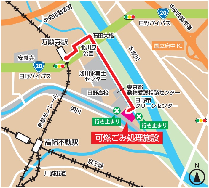 ※浅川側の道路からは当施設に入ることができないのでご注意ください。